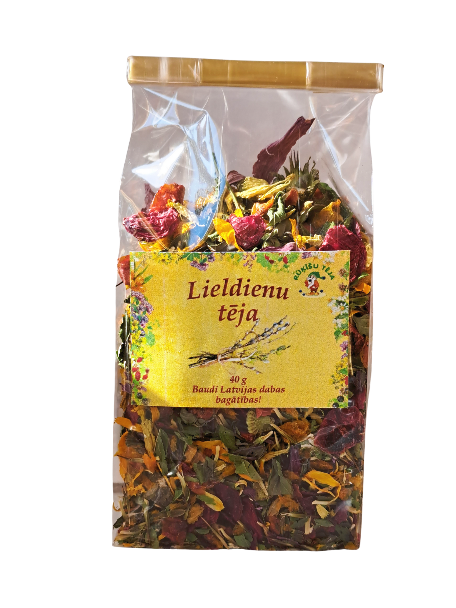 Sastāvdaļas. Ehinācijas ziedi, smiltsērkšķu ogas, irbenes ogas, pīlādžu ogas, dzērveņu, piparmētra, kliņģerīšu ziedi, gaiļpieši.